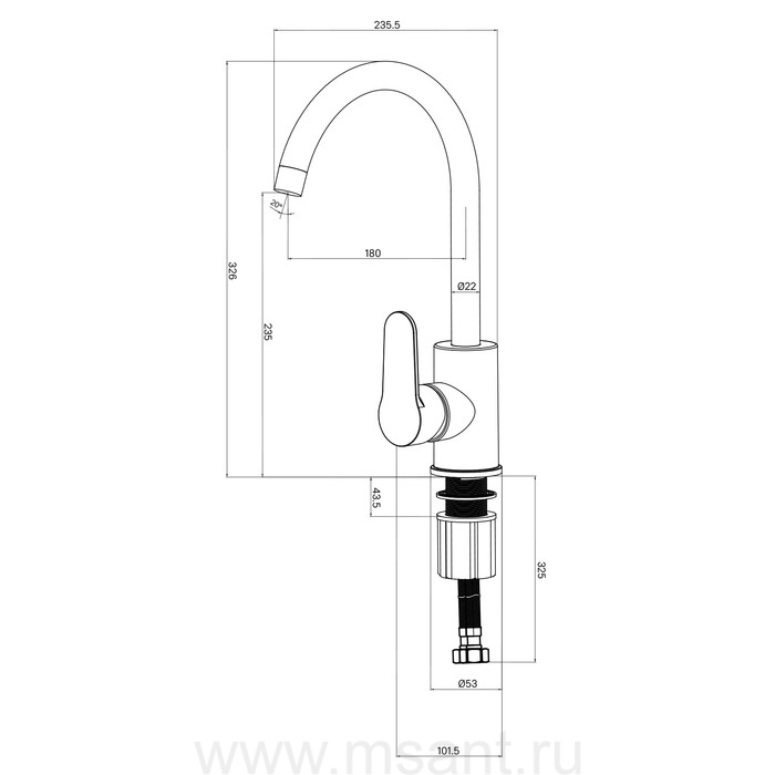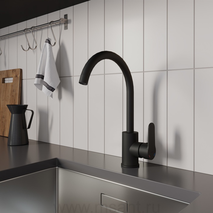 Смеситель для кухни, черный матовый, Poli, Milardo, POLBLJ0M05