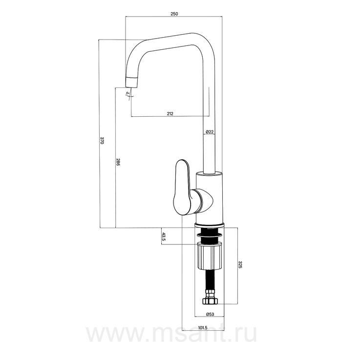 Смеситель для кухни, черный матовый, Poli, Milardo, POLBLL0M05
