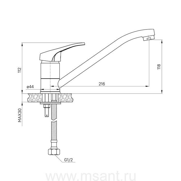 Смеситель для кухни, Meal, Milardo, M06SBR0M05