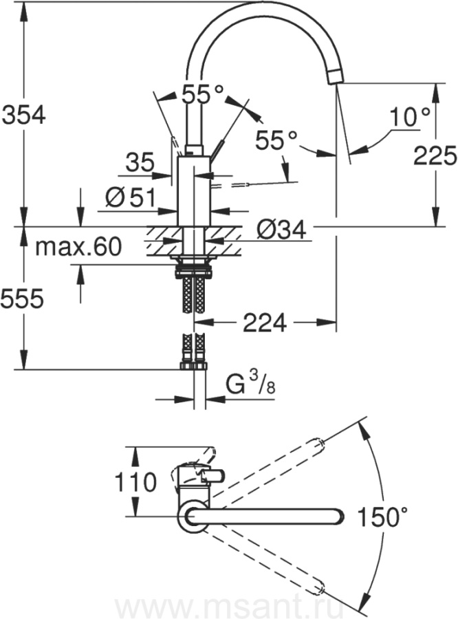 Смеситель Grohe Eurosmart Cosmopolitan 32843DC2 для кухонной мойки