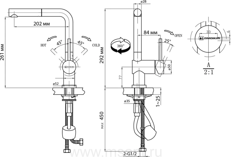 Смеситель Omoikiri Akashi-S для кухонной мойки