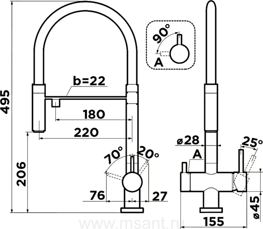 Смеситель Omoikiri Kanto 4994298 для кухонной мойки