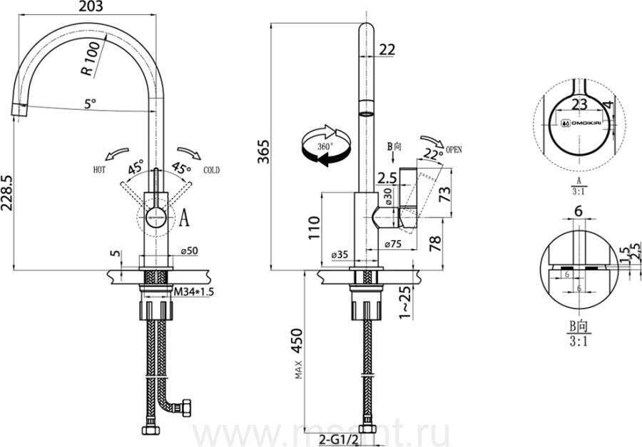Смеситель Omoikiri Wakayama PVD-GM для кухонной мойки