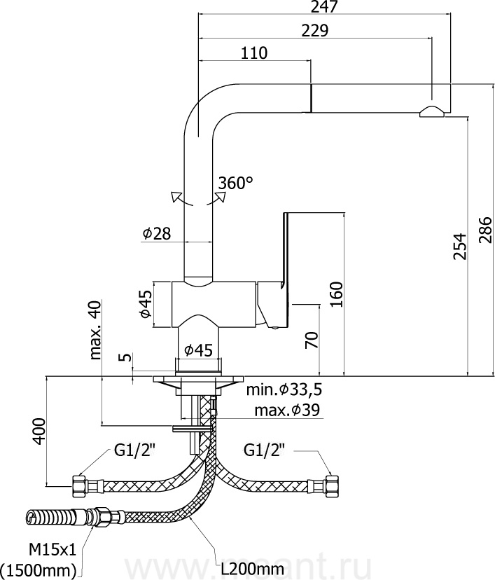 Смеситель Paffoni Ringo RIN185NO для кухонной мойки