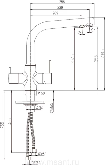 Смеситель Paini Arena 92CR6433VEB90DAKM для кухонной мойки