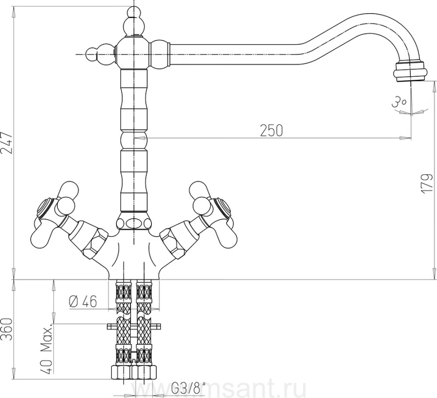 Смеситель Paini Monaco 08CR570BLMKM для кухонной мойки