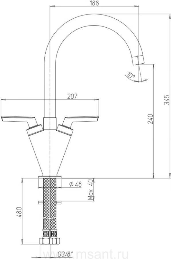 Смеситель Paini Neptune 64CR572NPKM для кухонной мойки