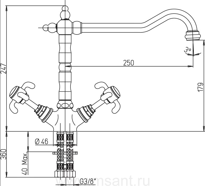 Смеситель Paini Ornellaia 87CR570BKM для кухонной мойки