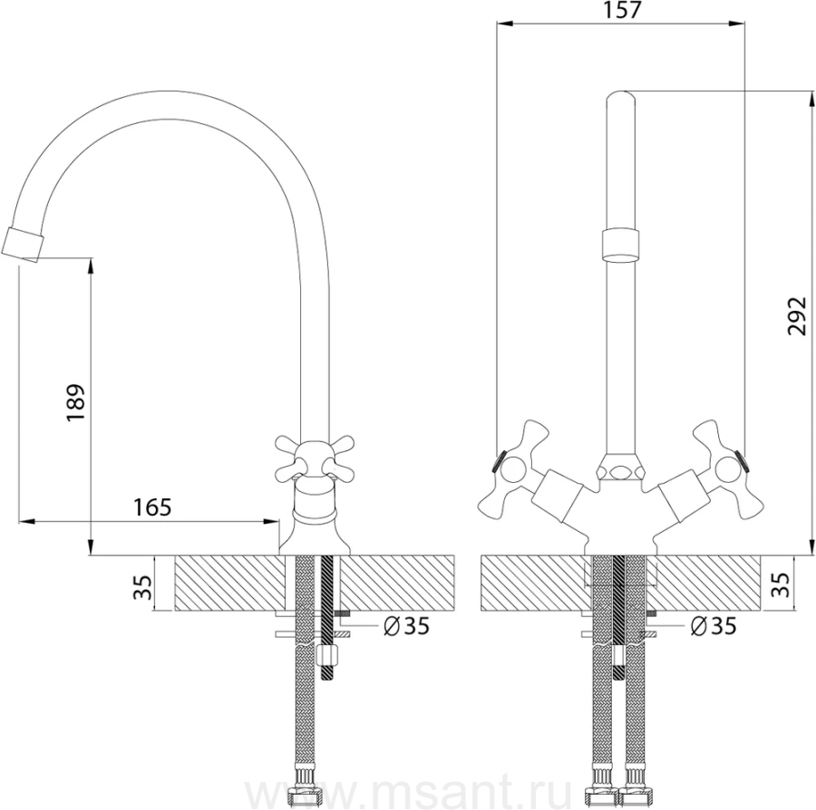 Смеситель Rossinka H H02-72R для кухонной мойки