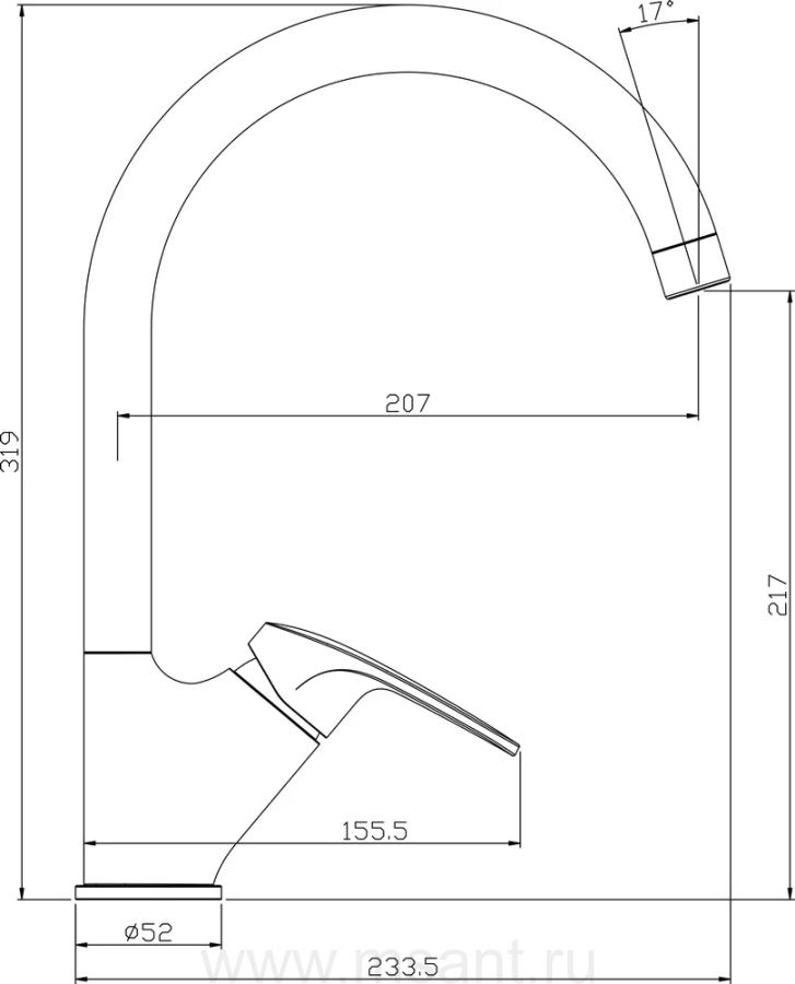 Смеситель Rossinka RS45-23 для кухонной мойки