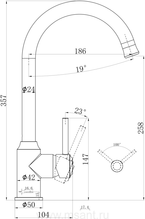 Смеситель Swedbe Selene 7440 для кухонной мойки