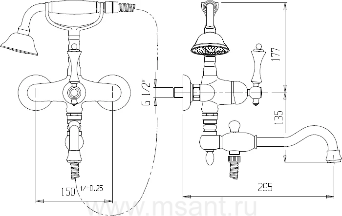 Смеситель Cezares Margot MARGOT-VDFM2-03/24-Bi для ванны с душем