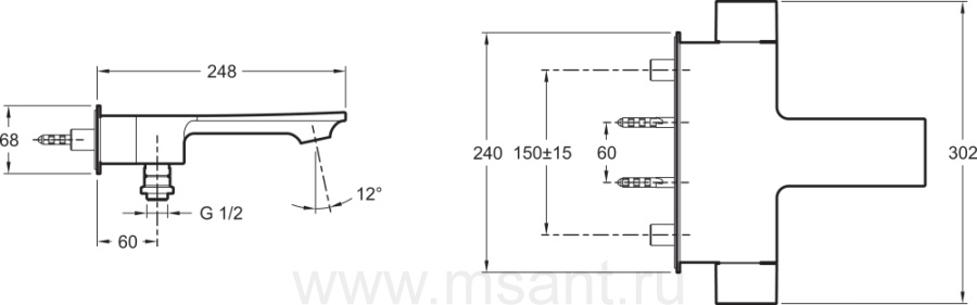 Смеситель Jacob Delafon Stance E9100-CP для ванны с душем