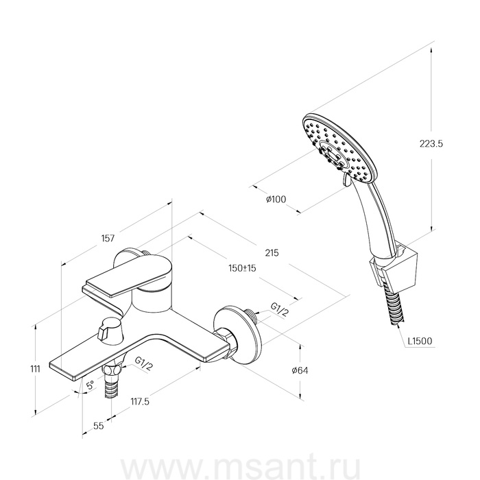 Смеситель для ванны, глянцевый хром, Azure, Milardo, AZUSB00M02