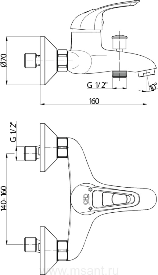 Смеситель GPD Adrio MBB120 для ванны с душем