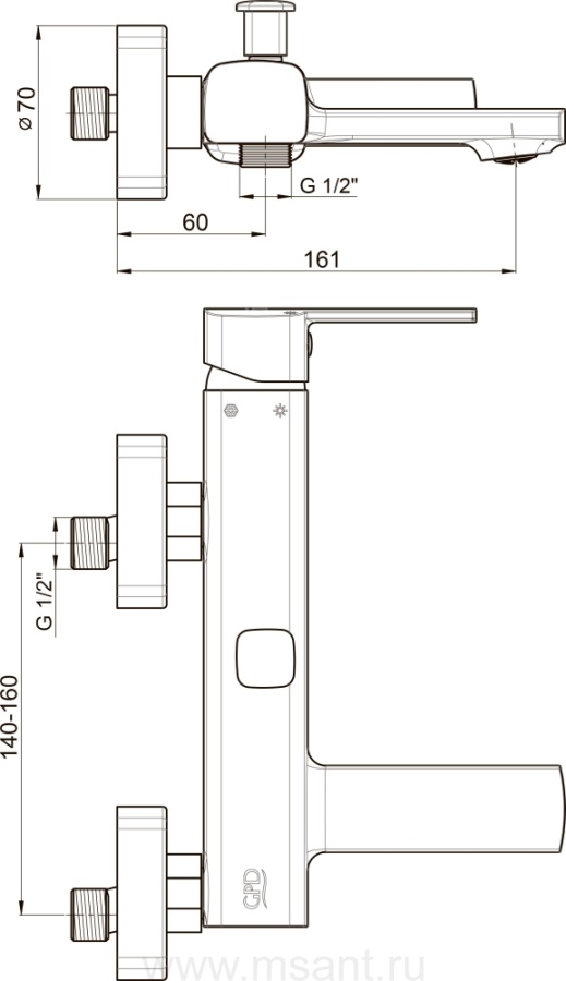 Смеситель GPD Pedra MBB160 для ванны с душем