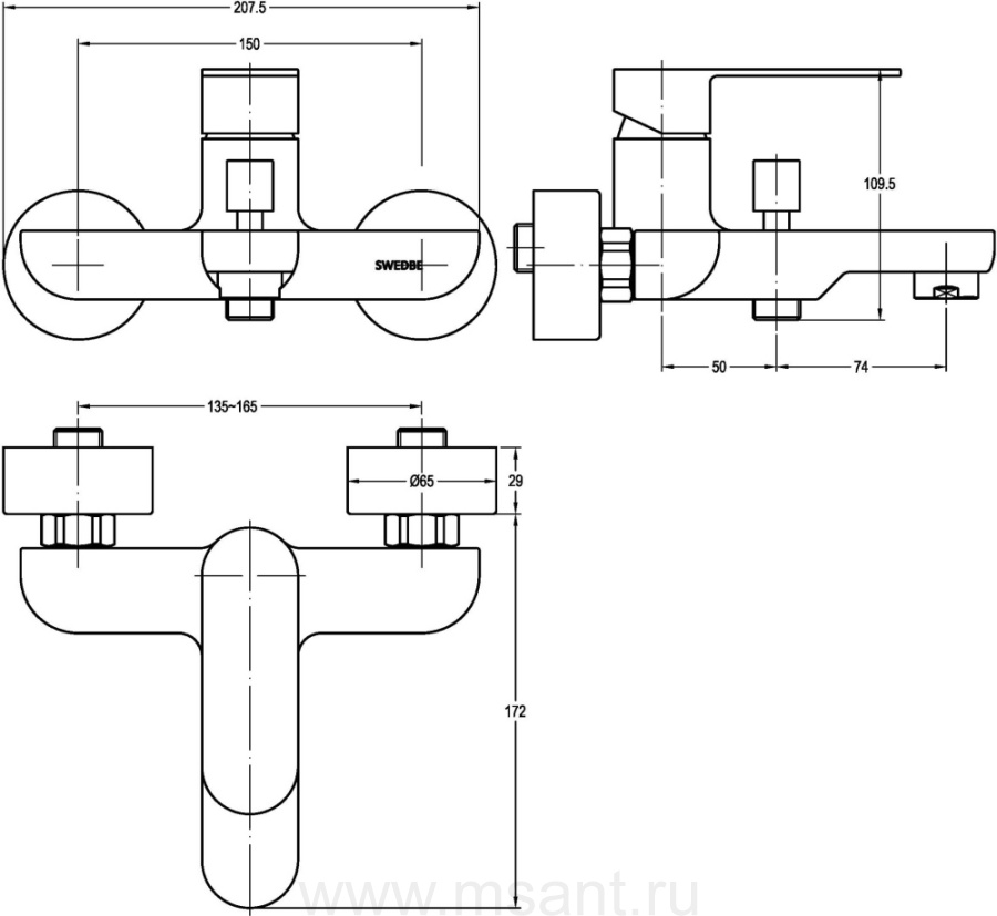 Смеситель Swedbe Vulcan 1130 для ванны с душем