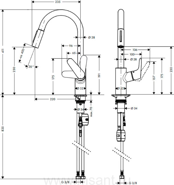 Смеситель Hansgrohe Focus 31815800 для кухонной мойки