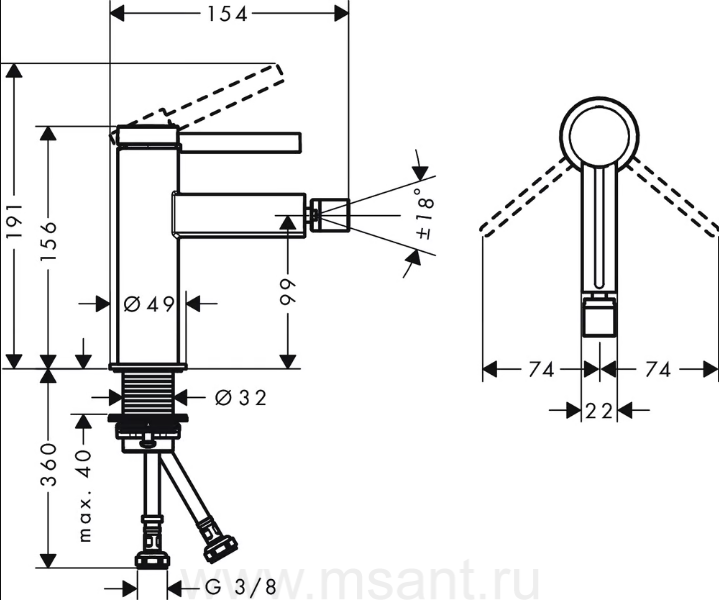 Смеситель Hansgrohe Finoris 76200000 для биде