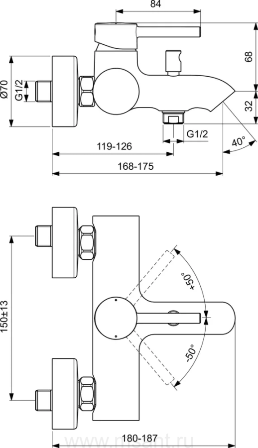 Смеситель Ideal Standard Ceraline BC199XG для ванны с душем, черный
