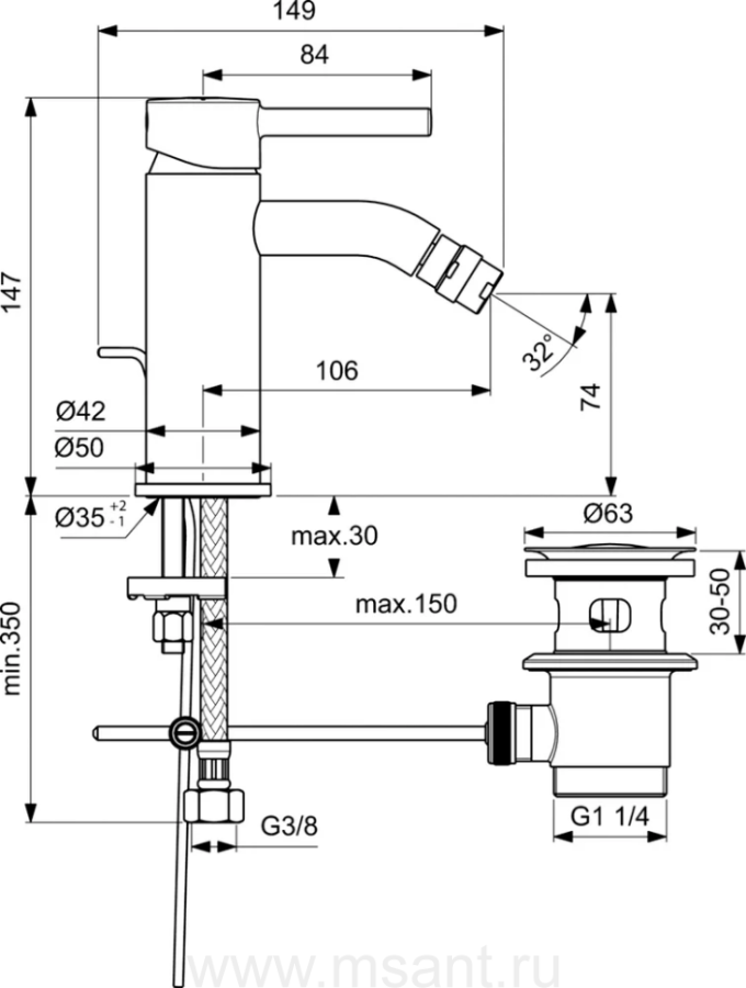 Смеситель для биде Ideal Standard Ceraline BC197XG черный