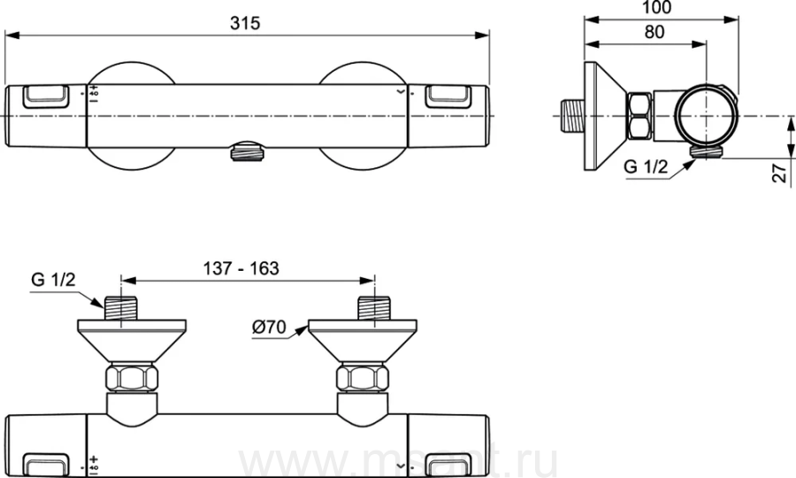 Термостатический смеситель Ideal Standard Ceratherm T25 A7201AA для душа