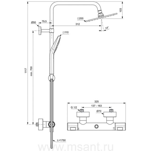 Смеситель Ideal Standard A7240AA душевая система с термостатическим смесителем для душа