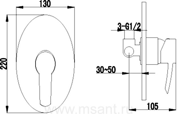 Смеситель Lemark Atlantiss LM3223C С ВНУТРЕННЕЙ ЧАСТЬЮ, для душа