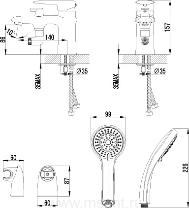 Смеситель Lemark Status LM4415C на борт ванны