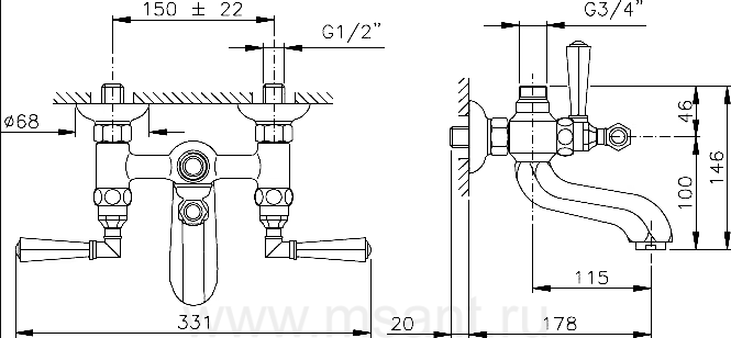 Смеситель Nicolazzi Teide 1900CR05 для ванны с душем, хром