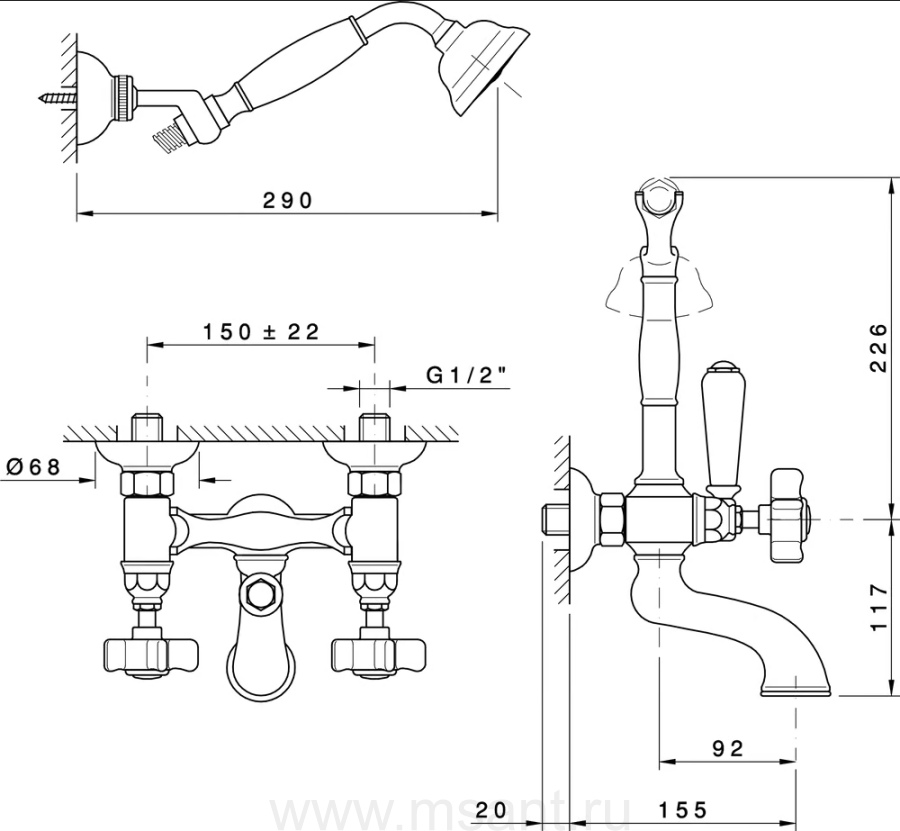 Смеситель Nicolazzi Tradizionale 1402CR18 для ванны с душем, хром