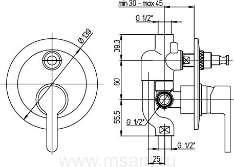 Смеситель Paini Arena 92CR691FTKM С ВНУТРЕННЕЙ ЧАСТЬЮ, для ванны с душем