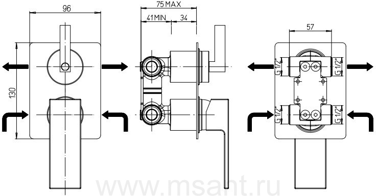 Смеситель Paini Dax 84PZ6911R С ВНУТРЕННЕЙ ЧАСТЬЮ, для ванны с душем