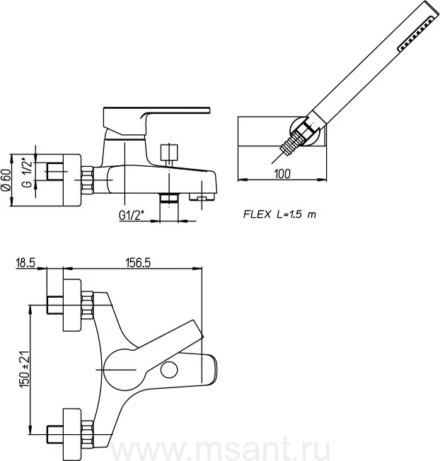 Смеситель Paini Le Mans 90CR1052SKM для ванны с душем