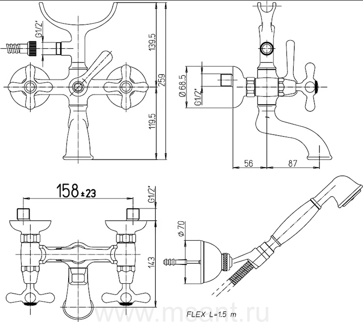 Смеситель Paini Liberty 17CR105KM для ванны с душем