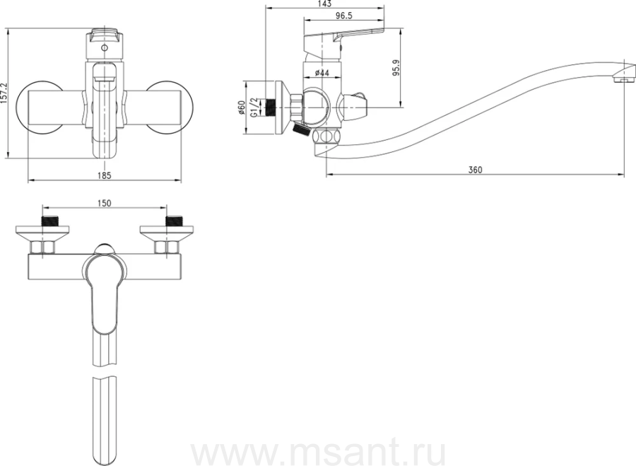 Смеситель Swedbe Olymp 1855 универсальный