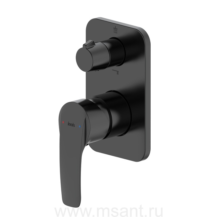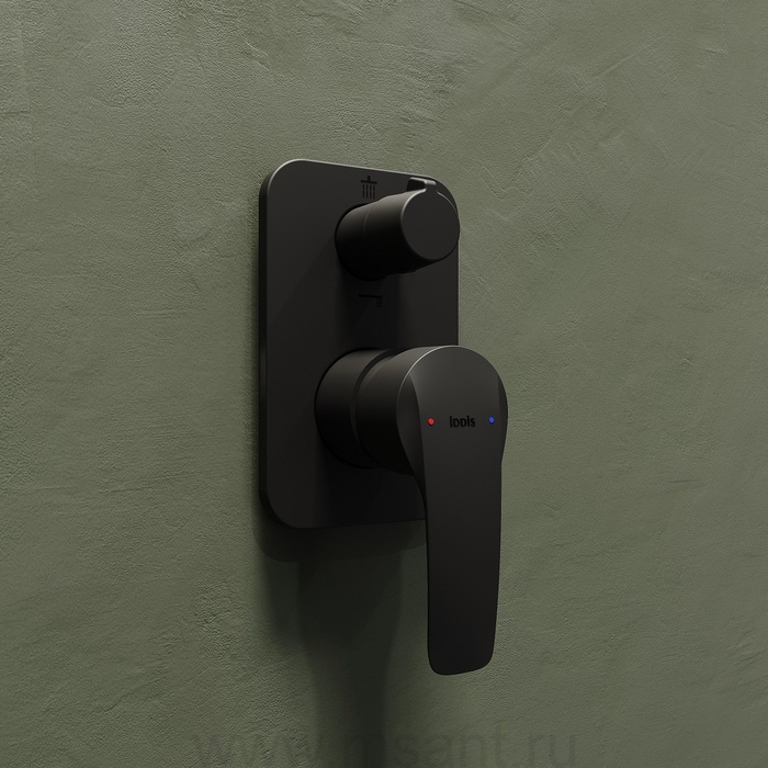 Встраиваемый смеситель с двумя выходами, черный матовый, Ray, IDDIS