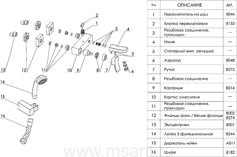 Смеситель Wasserkraft Aller 1061 для ванны с душем