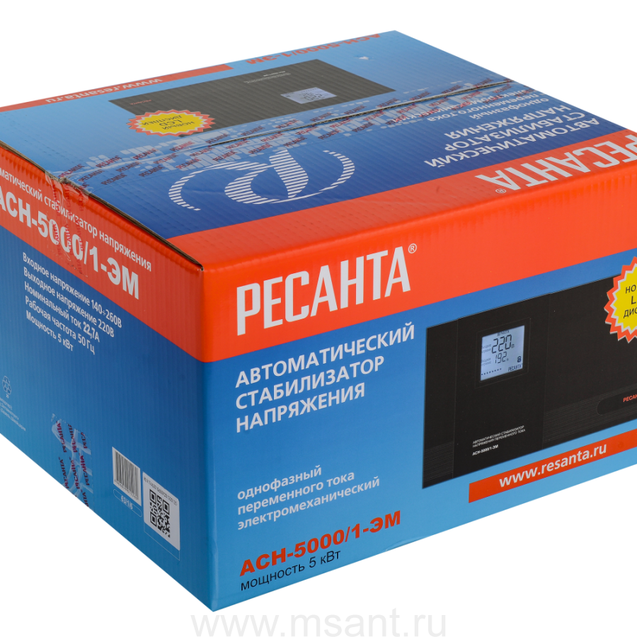 Стабилизатор напряжения РЕСАНТА АСН-5000/1-ЭМ