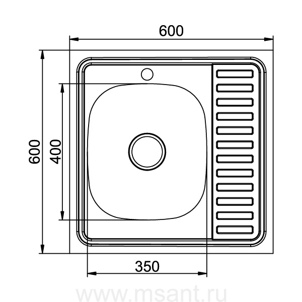 Мойка 60х60 (0,6) лев вып 3 1/2 MIXLINE 16см с сифоном