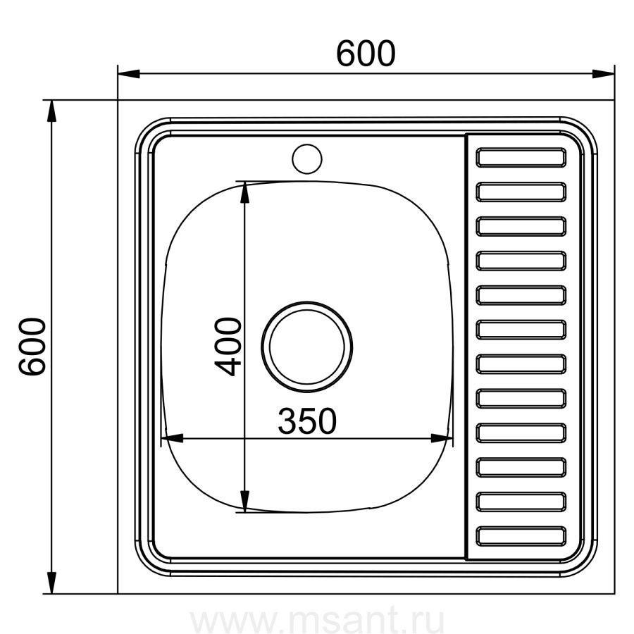 Мойка 60х60 (0,6) прав вып 3 1/2 MIXLINE 16см с сифоном
