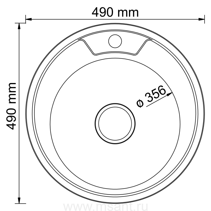 Мойка круг d 49 (0,6) вып 3 1/2 MIXLINE (глуб чаши 17см) с сифоном