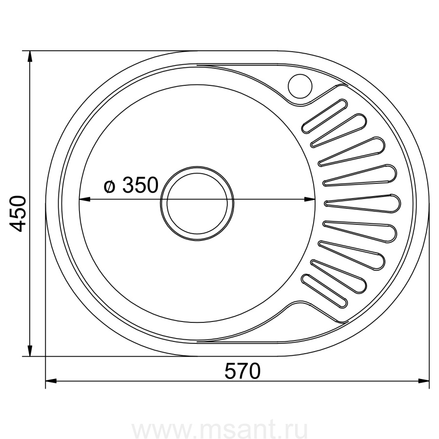 Мойка овал 57х45 (0,6) лев вып 3 1/2 MIXLINE 16 см с сифоном