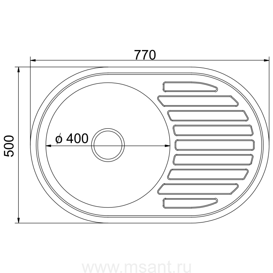 Мойка овал 77х50 (0,6) прав вып 3 1/2 MIXLINE 16см с сифоном