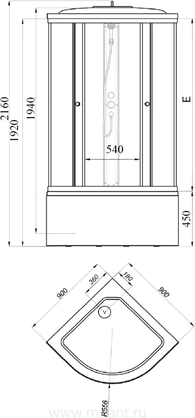 Душевая кабина Triton Стандарт Щ0000061834 Мозаика 90*90 Б-полка (ДН4) с высоким поддоном +сифон E410CL