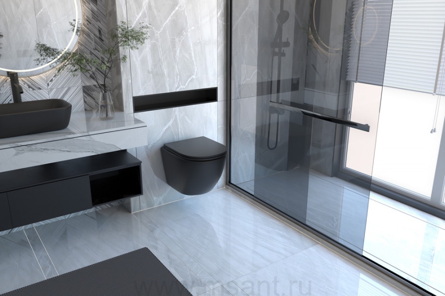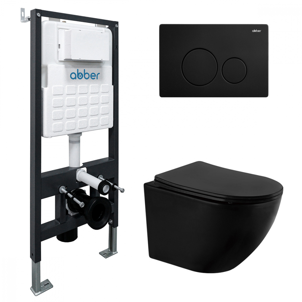 Комплект подвесной унитаз ABBER Bequem AC1100MB черный матовый с инсталляцией AC0105 и кнопкой AC0121MB черная матовая