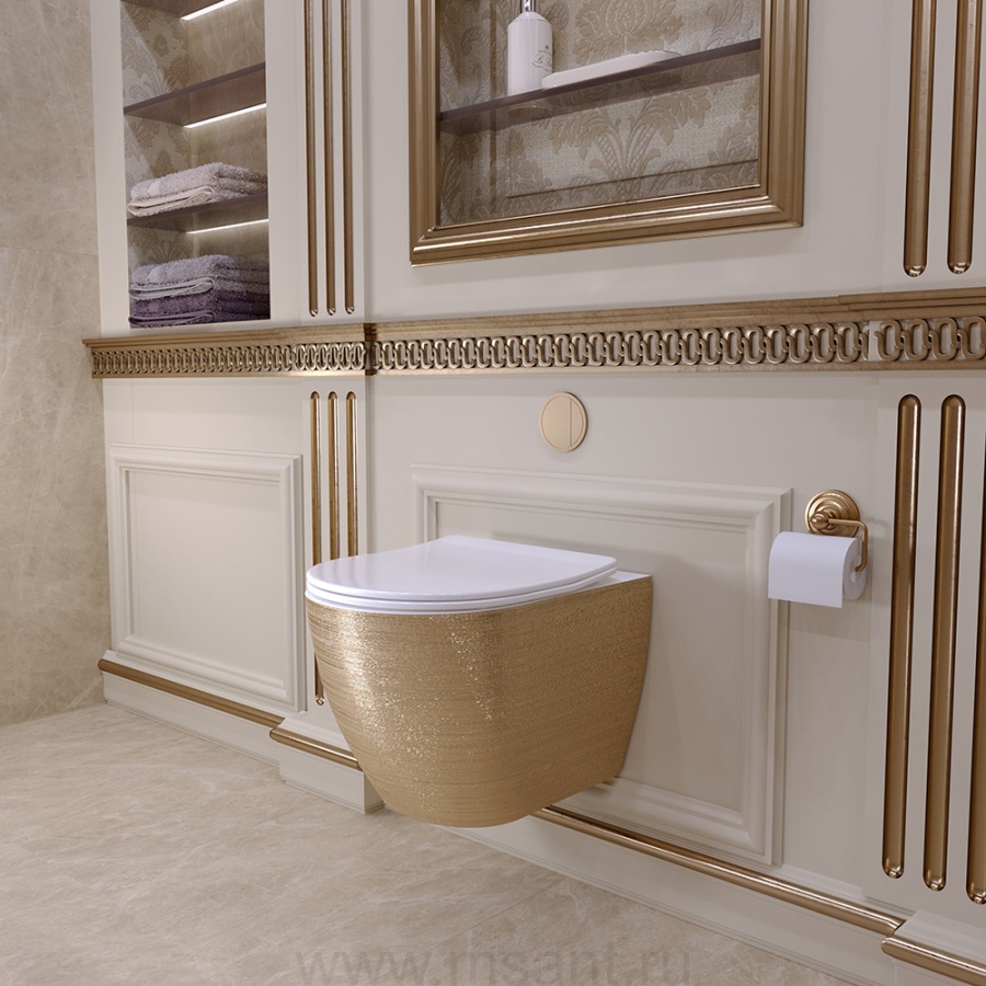 Унитаз Grossman GR-4455GWLS подвесной золотой, безободковый