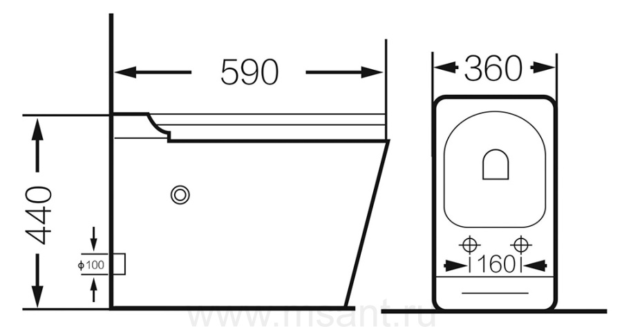 Унитаз Grossman GR-PR-5501 приставной с импульсным смывом, безободковый