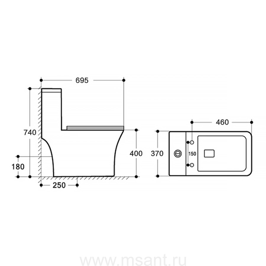 Унитаз-моноблок AZARIO Teano 695x370x740 напольный, горизонтальный слив, сиденье дюропласт микролифт