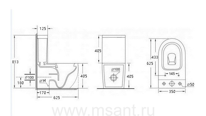 Унитаз напольный CRISAN (Matt Black). Размер: 625x365x820.